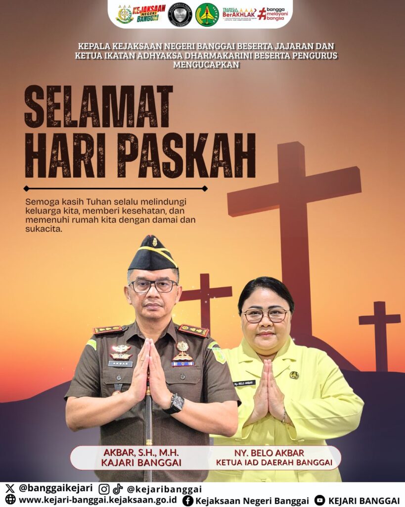 Kepala Kejaksaan Negeri Banggai beserta Jajaran dan Ketua Ikatan Adhyaksa Dharmakarini Daerah Banggai beserta Pengurus mengucapkan “Selamat Memperingati Hari Paskah, 05 April 2026”