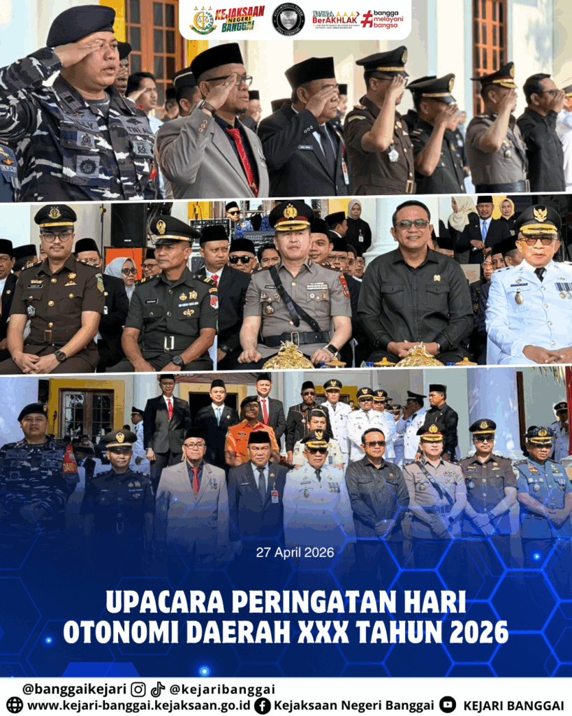 Hari Senin, 27 April 2026 bertempat di Halaman Kantor Bupati, Kepala Kejaksaan Negeri Banggai yang diwakili oleh Kepala Seksi Perdata dan Tata Usaha Negara menghadiri kegiatan Upacara Peringatan Hari Otonomi Daerah XXX Tahun 2026 dengan Tema “Dengan Otonomi Daerah Kita Wujudkan Asta Cita”